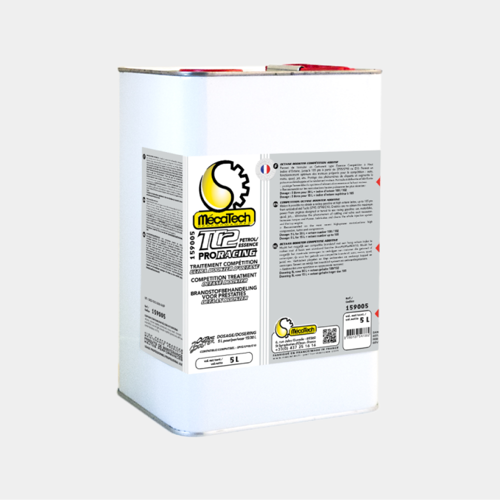 Dosage : 15 à 30% selon l’effet recherché. Dosage de 5 L pour 30 L doit amener à un indice d’octane de 100/102 Dosage de 5 L pour 15 L doit monter à plus de 105 d’indice d’octane.